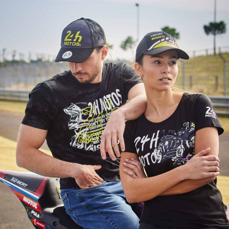 Immerse yourself in the world of the 24 Heures Motos with the driver's cap. Designed for speed and competition enthusiasts, this black cap features the emblematic 24H Motos logo embroidered in yellow on the front. Its curved visor and slim fit ensure optimum comfort, while its breathable fabric keeps you cool all day long.
