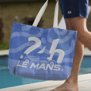 Get ready for the summer season with our blue beach tote bag. Featuring a Hypercar motif, inspired by the excitement of the Le Mans 24 Hours. It combines elegance and functionality to carry your essentials, whether for a day by the ocean or a trip into town.
