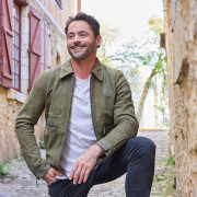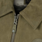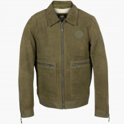 Olive green nubuck leather jacket from the Steve McQueen x Le Mans collection. With its refined cut and impeccable finish, it will accompany you in style on and off the track.