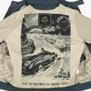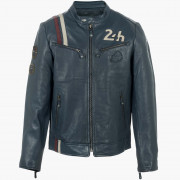 Royal blue leather jacket carefully crafted from genuine leather. A heritage of speed, timeless elegance. This leather jacket is the centerpiece of the 24H Le Mans collection.