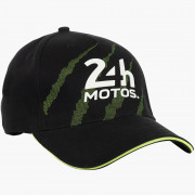Wear a cap with a dynamic black and neon green design ! A must-have for endurance racing fans. The "24 Heures Motos" logo is highlighted with a striking claw effect on the front.