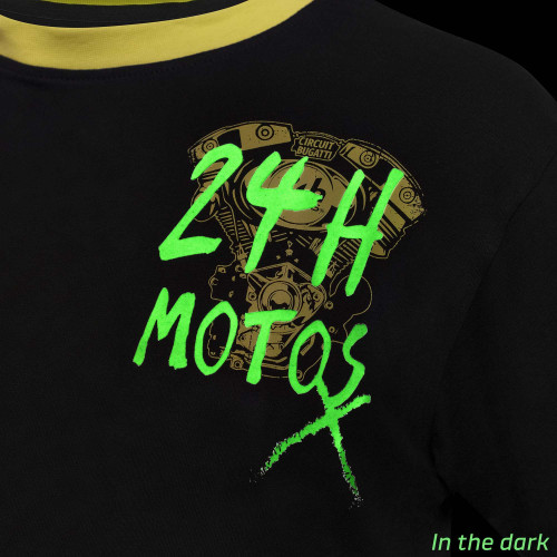 This isn't just a T-shirt, it's a portal to the night-time world of the 24 Hours Motos (Bikes). When darkness falls, your passion continues to shine thanks to these phoshorescent details that light up in the dark. A must-have for every fan !
