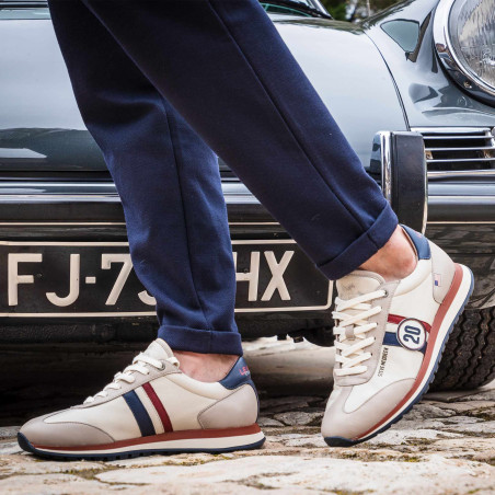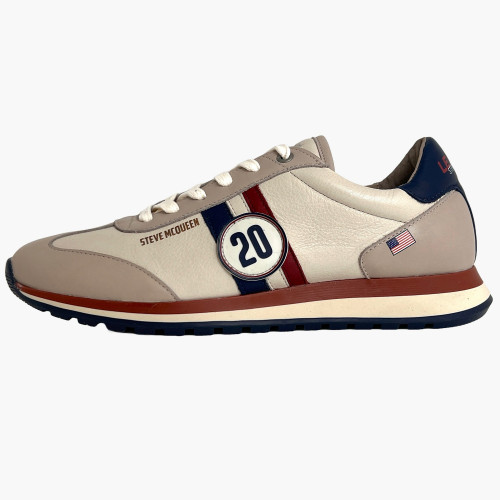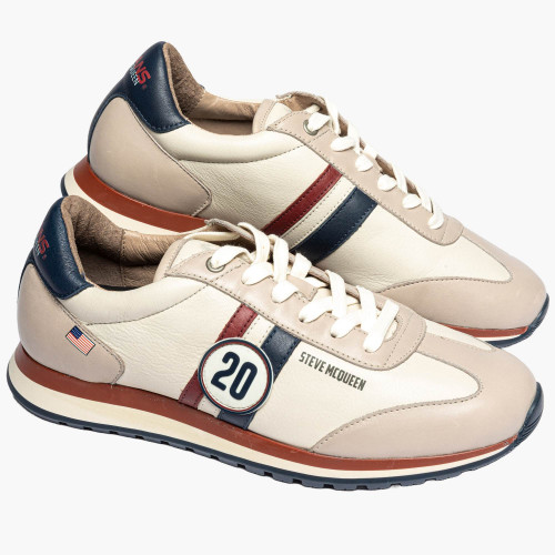 Show off your passion for motorsport and casual elegance with the Basket Cool in cowhide leather, an exclusive collaboration between Steve McQueen and Le Mans. These leather sneakers embody the spirit of racing and Steve McQueen's inimitable style. Available in 3 colours: ecru / blue / red.