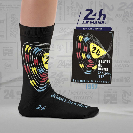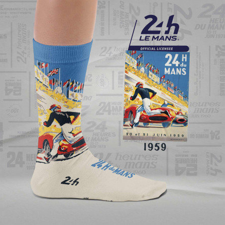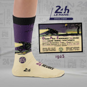 Relive the great years of the race with this exclusive pack of 4 pairs of socks, each adorned with an emblematic poster from the 1959, 1957, 1955 and 1923 editions of the 24 Hours of Le Mans. Each pair comes with a matching postcard, faithfully reproducing the poster from the corresponding year.