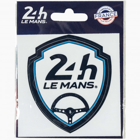 Sticker officiel représentant un écusson volant des 24 Heures du Mans. Idéal pour voiture, valise ou ordinateur. Fabriqué en France. Format : 8x8 cm
