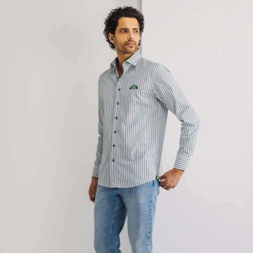 Cette chemise à la coupe classique et aux motifs rayés est d'une élégance classique. Le tissu double face lui confère un aspect luxueux, tandis que la qualité supérieure du coton garantit une tenue souple et confortable.
