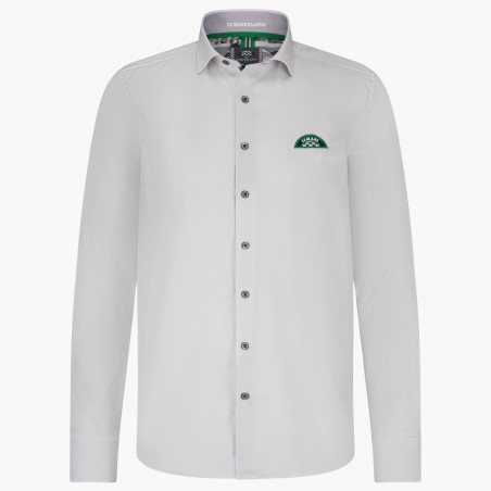 Avec sa coupe classique, cette chemise incarne une élégance sobre et intemporelle. Confectionnée dans un tissu double face au toucher luxueux, elle offre un confort souple grâce à la qualité supérieure de son coton. Son design épuré affirme un style résolument raffiné. Les illustrations graphiques inspirées de l’univers Le Mans Classic, discrètement réparties, apportent une touche d’originalité subtile et parfaitement dosée.