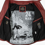Blouson en cuir pour homme de la collection 24 Heures Le Mans. Disponible en deux déclinaisons rouge foncé ou bleu royal/orange. Ce blouson incarne l'esprit de la compétition et du prestige.