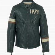 Veste en cuir couleur patrol à zipper, conçue pour les amateurs de vitesse et de sensations fortes. Son design, inspiré de l'univers de la course automobile en fait un véritable incontournable pour les fans des 24 Heures du Mans.