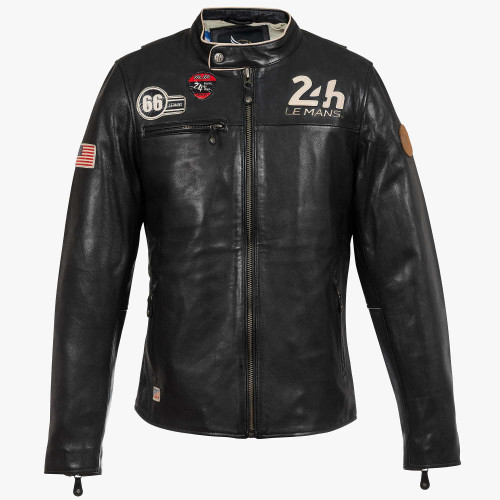 Blouson en cuir noir de la collection des 24 Heures Le Mans. Vous apprécierez le mélange de modernité et d'élégance qui la rend facile à porter au quotidien, juste pour se faire plaisir.