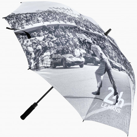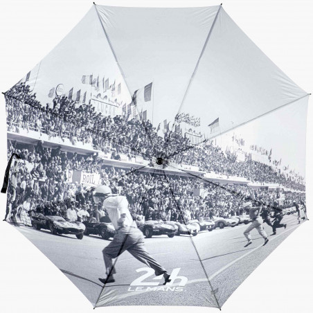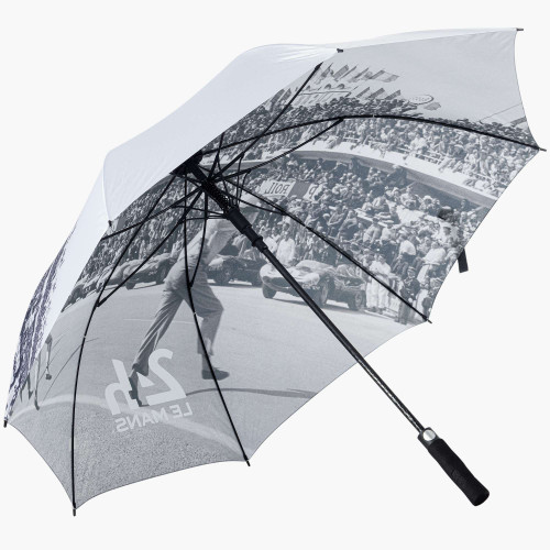Plongez dans l’histoire mythique des 24 Heures du Mans avec ce parapluie grand format, orné d’une photo rétro iconique du légendaire départ couru. Alliant robustesse, praticité et élégance, il vous protège avec style lors de vos journées pluvieuses.
